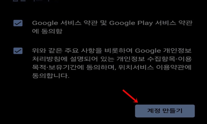 페이지 하단의 "계정 만들기"를 클릭합니다.