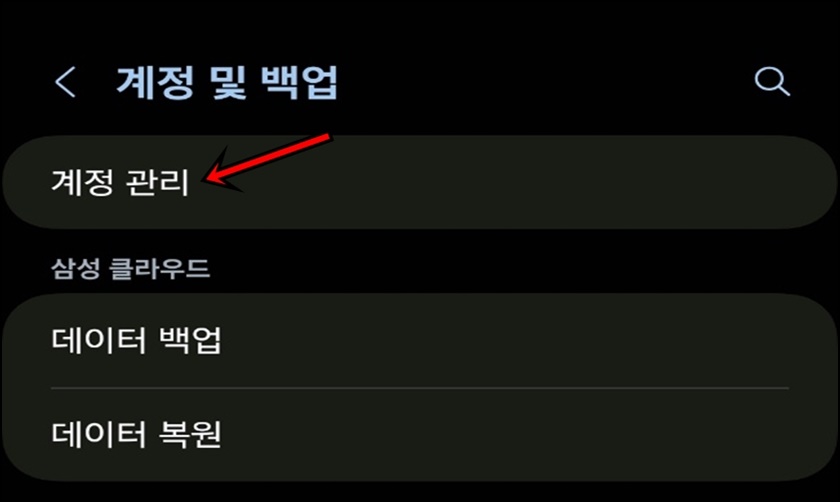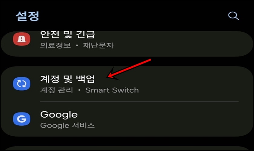 설정으로 들어가시면 "계정 및 백업"메뉴로 들어가 줍니다.
