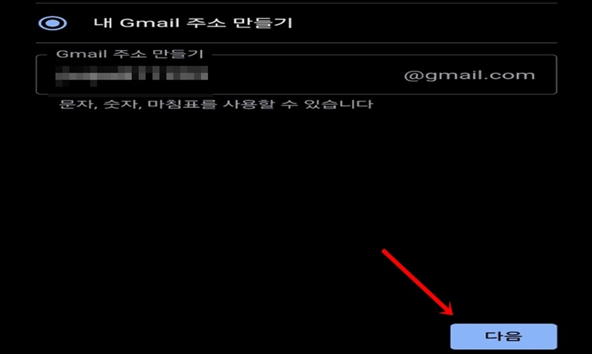 Google계정의 성, 이름등을 입력 후 "다음"버튼을 클릭합니다. 성의 경우 선택사항이기에 작성하지 않으셔도 됩니다.