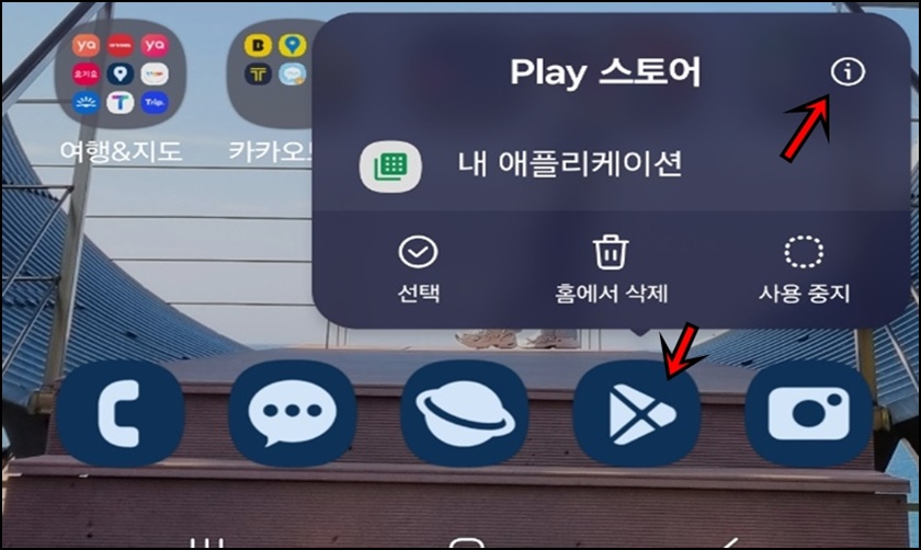 이제 VPN을 미국으로 설정 후 켜둔 상태에서 플레이스토어를 길~게 누르시면 위 사진처럼 느낌표나 앱 정보메뉴가 보일 텐데 선택해서 들어가 줍니다.