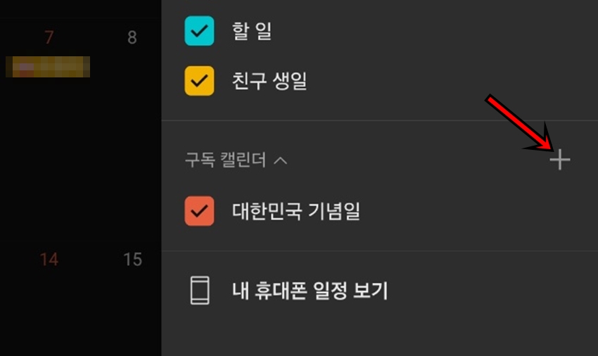 위 사진처럼 "구독 캘린더"부분에 + 모양 아이콘을 클릭해 줍니다.