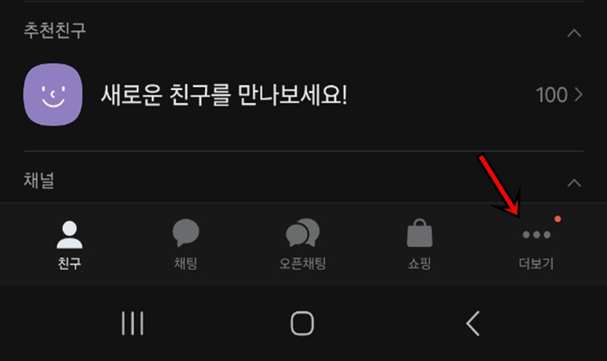 우선 여러분의 스마트폰에서 카카오톡을 실행 후 오른쪽 하단의 "더 보기"메뉴를 클릭합니다.