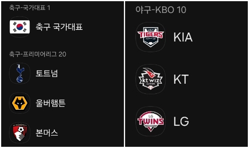 위 사진처럼 "축구 국가대표"부터 프리미어리그, 프로야구정보 등을 확인할 수 있습니다.