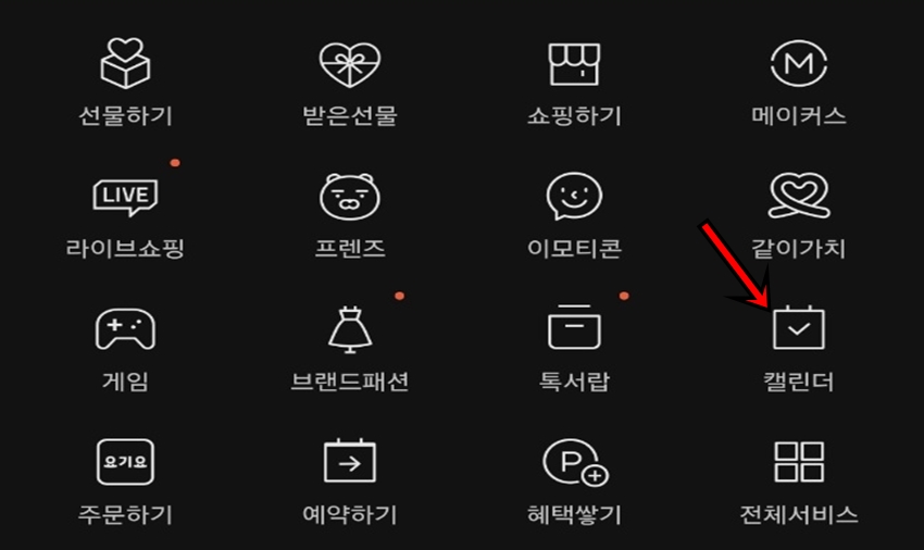 "더 보기"메뉴로 들어가시면 중간쯤에 "캘린더"버튼을 클릭해줍니다.