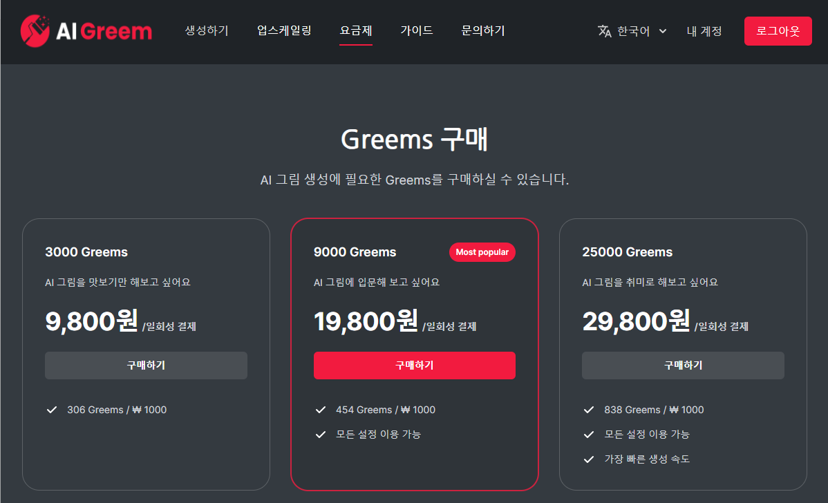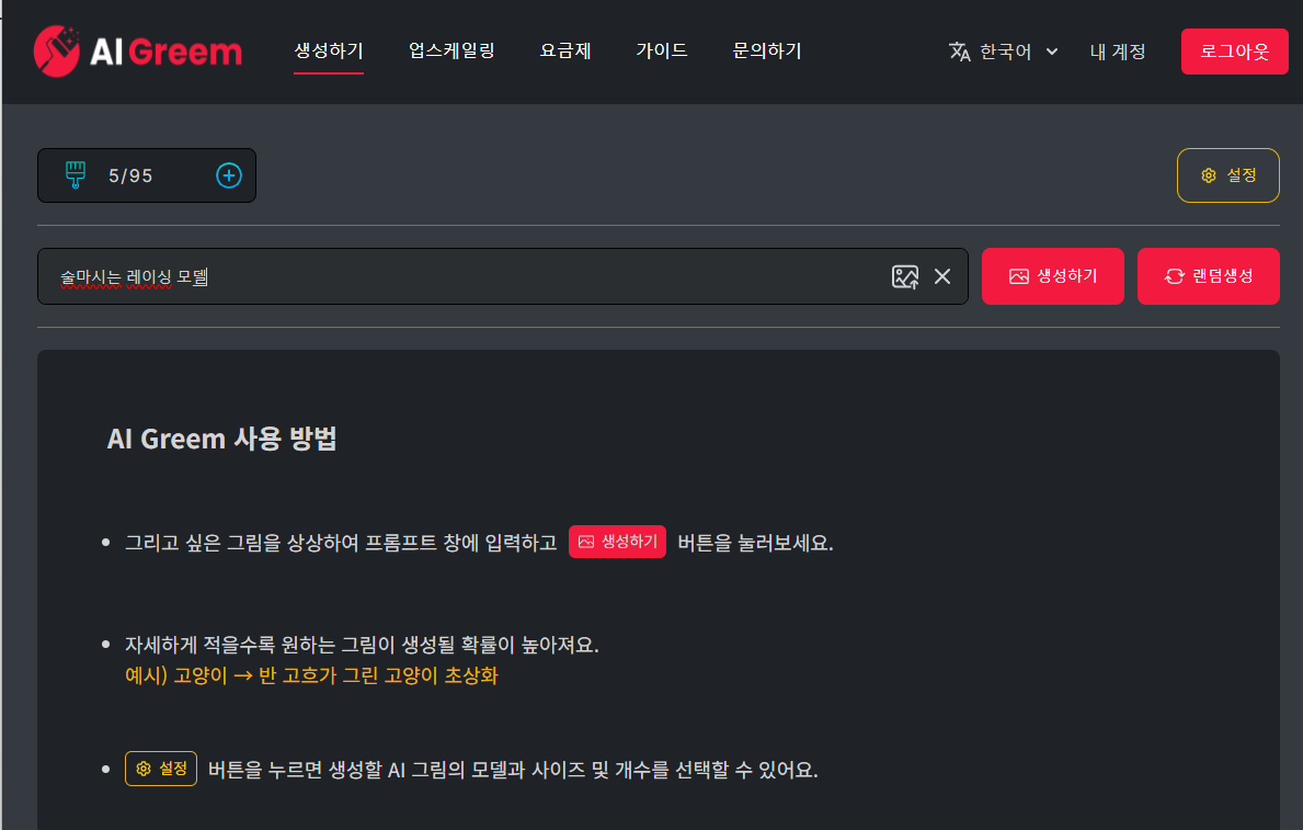 AI그림 생성 사이트는 "aigreem"하나면 되요