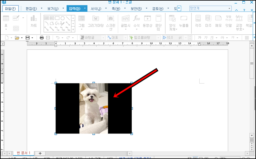 먼저 한글 프로그램을 실행 후 상단의 [입력]메뉴 클릭 -> [동영상] 버튼을 클릭해 줍니다.