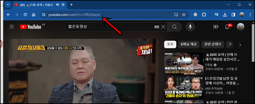 다음은 다운로드한 동영상이 아닌 외부 링크를 통해 동영상을 한글에 동영상을 삽입하는 방법을 설명드리겠습니다. 우선 유튜브나 혹은 삽입하려는 동영상의 링크를 복사를 해줍니다.