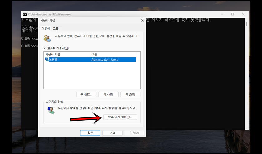 Windows11 비밀번호 분실 했을때 초기화 하는 방법