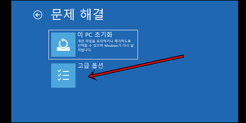 "고급 옵션"메뉴를 클릭해 줍니다.