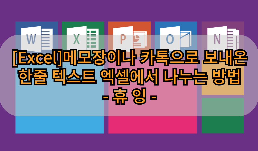 안녕하세요 오늘도 휴잉의 블로그를 찾아주신 여러분 감사드립니다. 오늘 제가 포스팅할 내용은 메모장 혹은 카톡으로 보내온 한 줄 텍스트를 엑셀에서 붙여 넣기 할 때 엑셀에서 텍스트를 나누는 방법에 대해 포스팅해보려고 합니다. 간혹 업무적으로 카톡으로 작성한 직원명단을 보내오거나 한 줄로 된 텍스트로 된 데이터를 보내오는 경우가 있는데, 이 데이터를 엑셀로 복사해서 문서를 만들어야 할 때가 있습니다. 한 줄로 된 텍스트를 엑셀로 붙여 넣기 하면 아시는 분들은 아시겠지만 각각 셀에 들어있는 텍스트를 하나씩 수정해야 하는 번거로움이 있습니다. 이런 번거로움을 해결하고자 아주 간단하게 한 줄 텍스트를 엑셀에서 깔끔하게 나누는 방법을 설명드리겠습니다.
