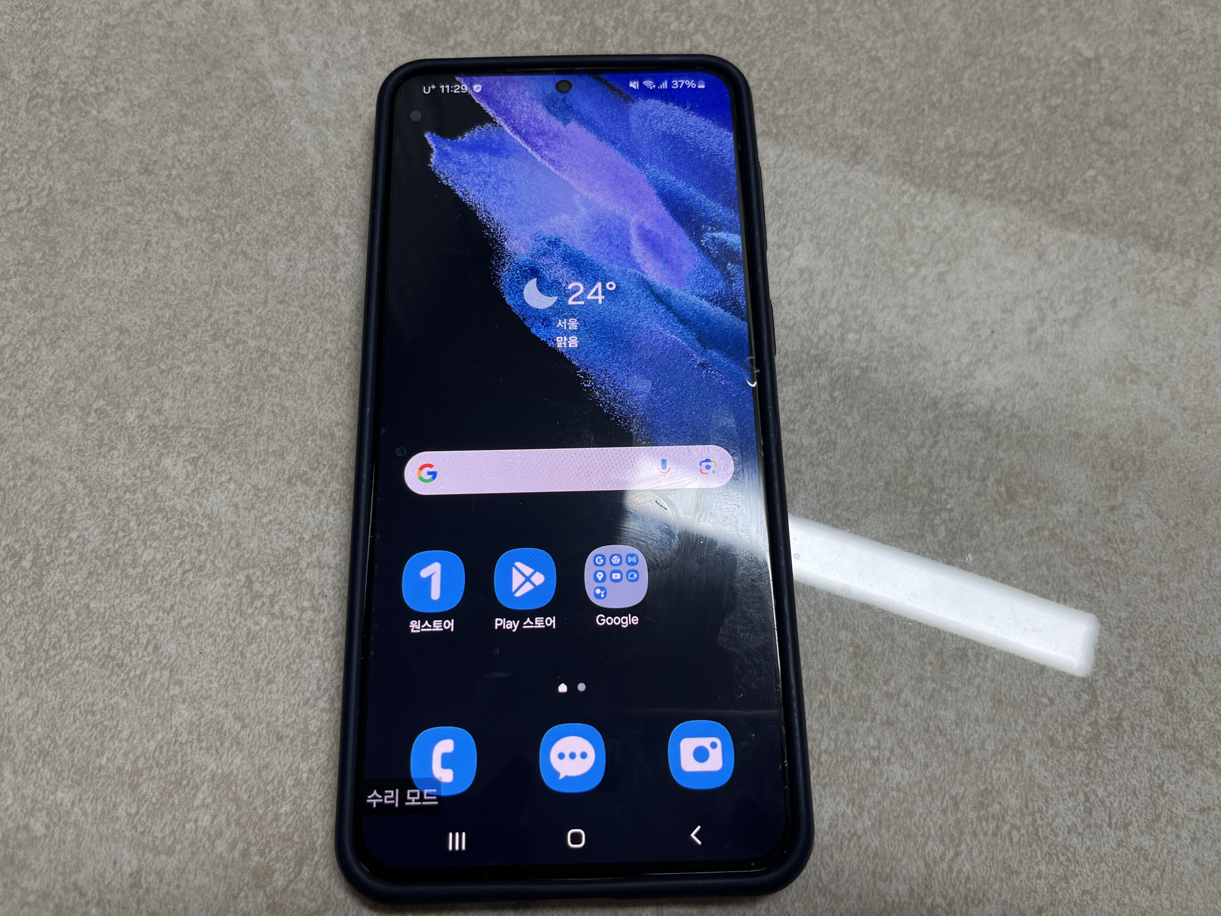 스마트폰 왼쪽 하단에는 "수리모드"라고 표현되며, 앞서 말씀드린 대로 사진첩이나, 메시지등 개인정보가 포함된 내용들은 확인할 수 없습니다.