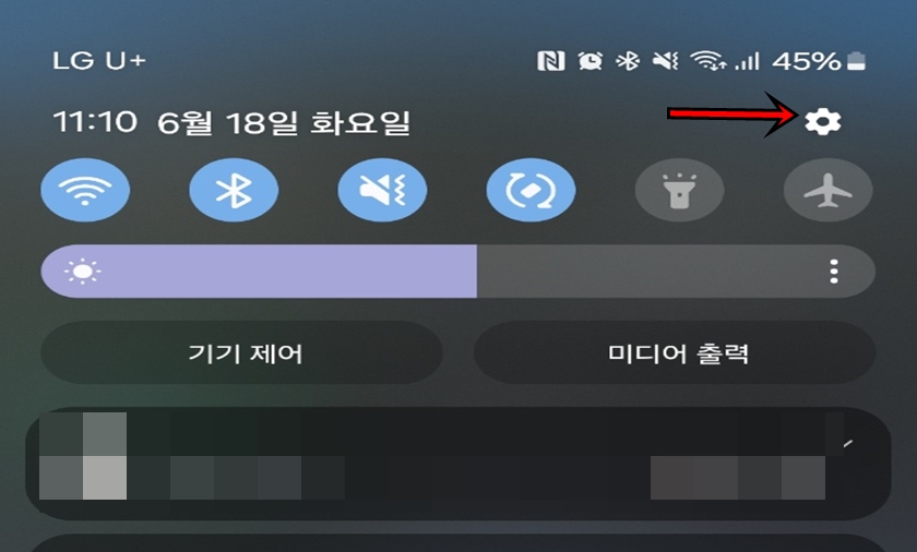 먼저 스마트폰의 상단을 내려서 톱니바퀴[설정]를 클릭해 줍니다.