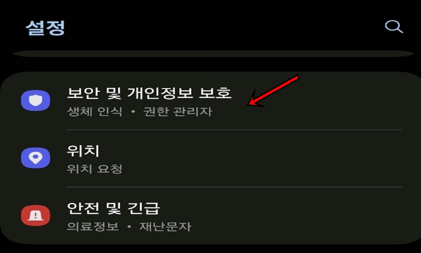 동일하게 설정으로 이동해 "보안 및 개인정보 보호"를 클릭해 줍니다.
