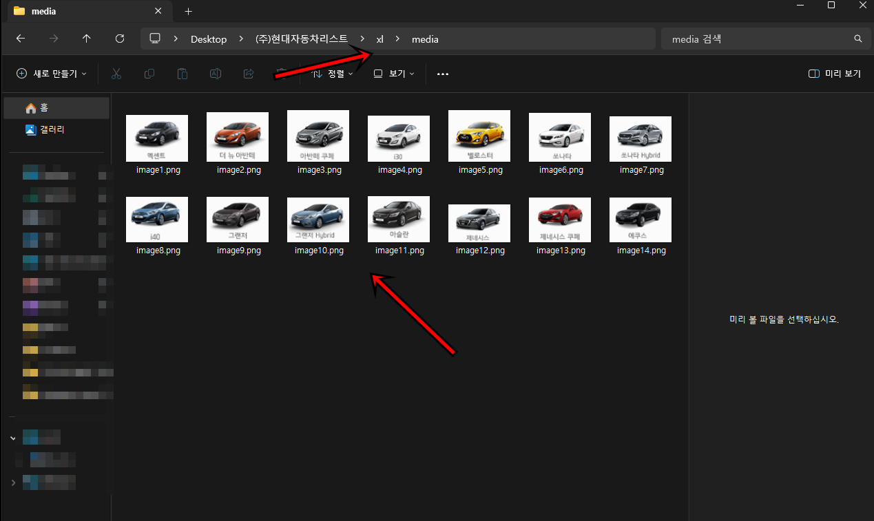 압축해지된 폴더로 들어가 xl -> media 폴더로 들어가면 위 사진처럼 엑셀파일에 첨부되었는 사진들의 원본파일들이 각각 저장되어 있는 걸 확인할 수 있습니다. 아주 쉽고 간단하죠?