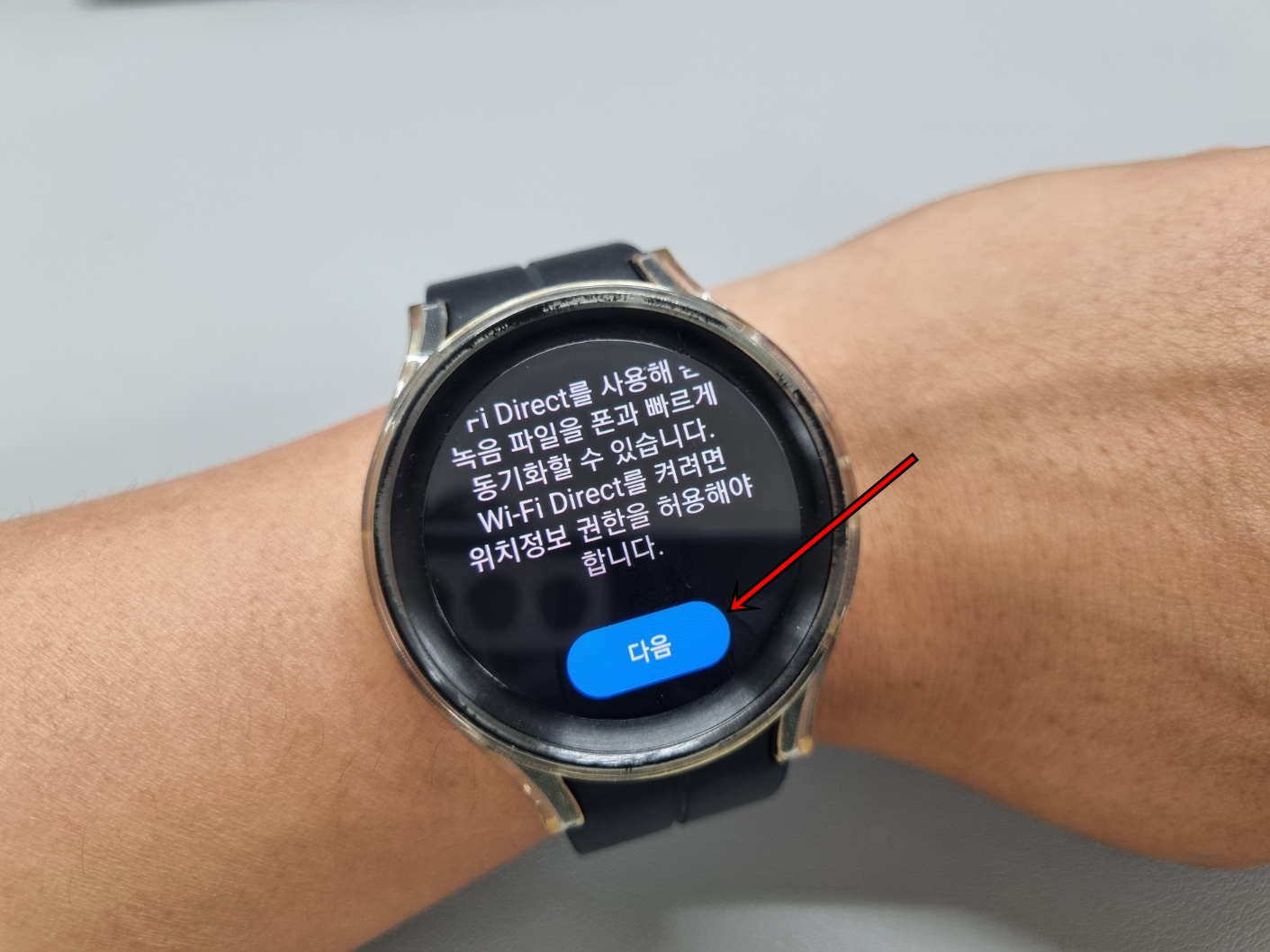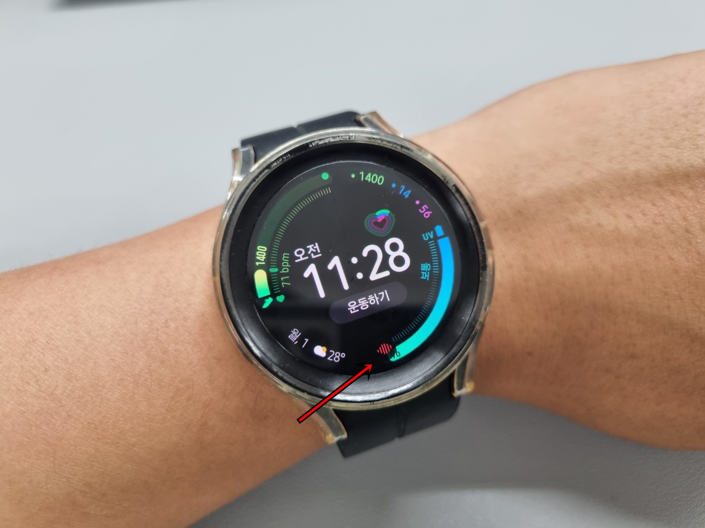 먼저 워치5 에서 손가락을 이용해 아래서 위로 쓸어줍니다.