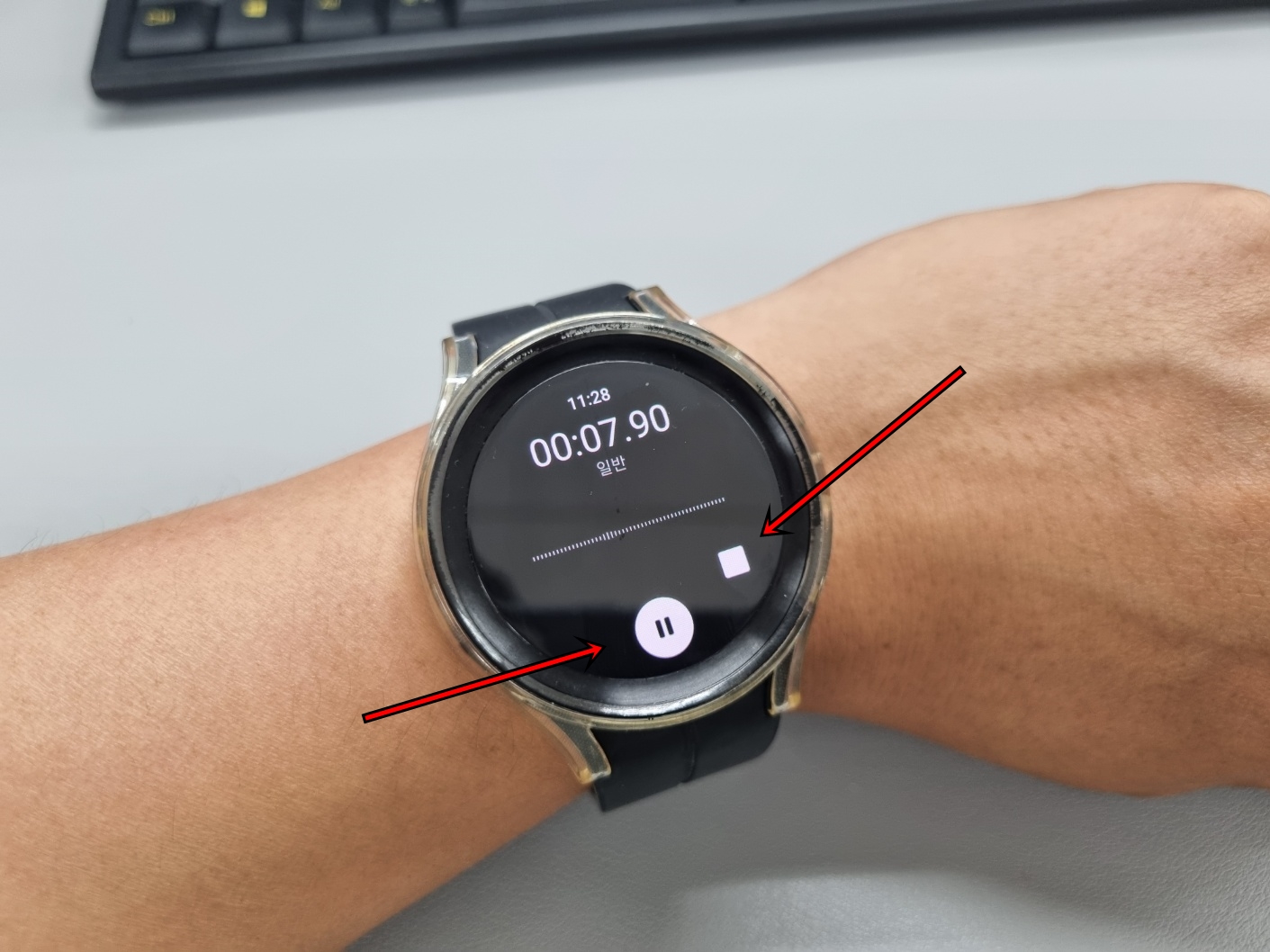 가운데 버튼을 클릭하면 일지 중지가 되고 오른쪽 버튼을 클릭하면 녹음을 종료하게 됩니다.