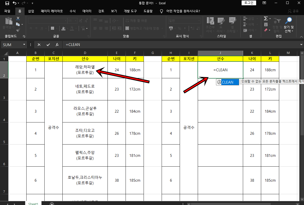 자 그럼 아래 예제를 통해 어떤경우에 CLEAN함수를 사용하는지 알아보도록 하겠습니다.