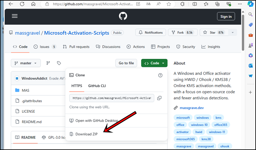 GitHub - massgravel/Microsoft-Activation-Scripts: A Windows and Office activator using HWID / Ohook / KMS38 / Online KMS activat