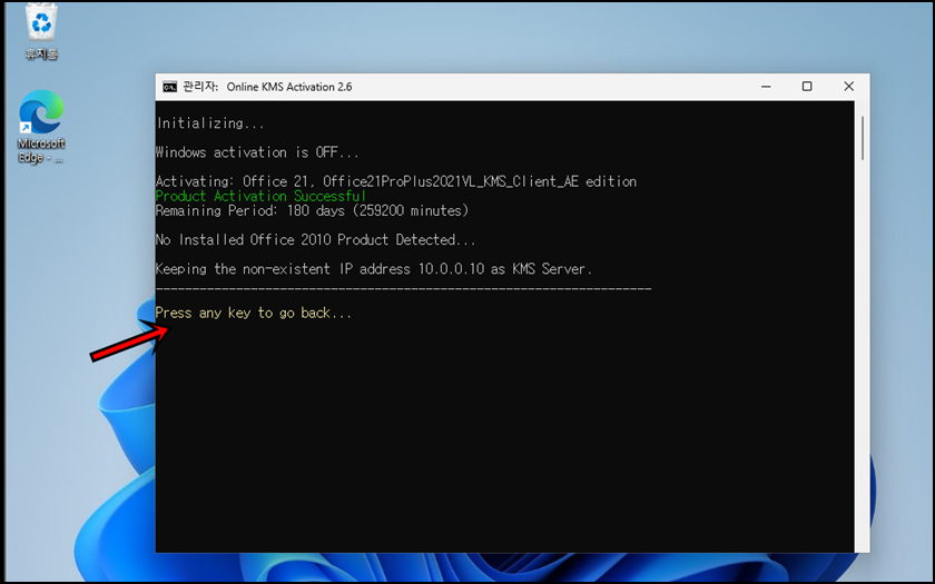 위 사진과 같이 Press any Key to go back...라고 메시지가 나오면 창을 닫아줍니다. 이제 정품인증이 완료되었는데, 한번 확인해 보도록 하겠습니다.