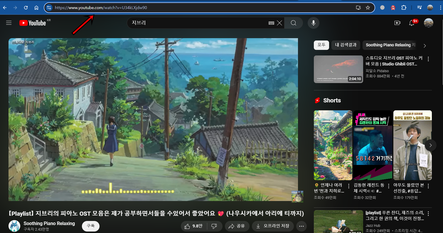 영상을 시청하면 상단의 URL주소가 나올 텐데 전체 복사를 해주세요.