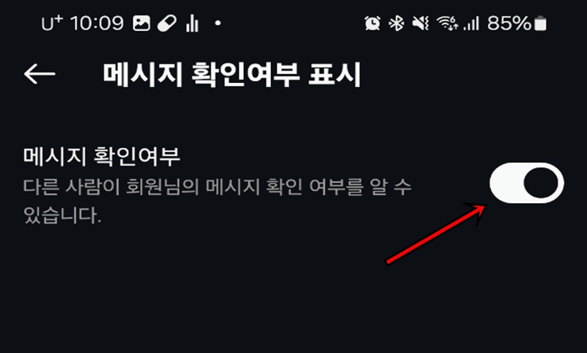 메시지 확인여부가 "비활성화"상태이면 여러분이 메시지를 읽었는지 확인할수가 없어요. 내가 메세지를 읽었는지 상대방이 모르게 하고 싶다면 "비활성화" 상태로 해주시면 될 것 같아요^^.