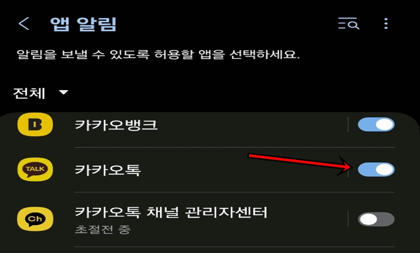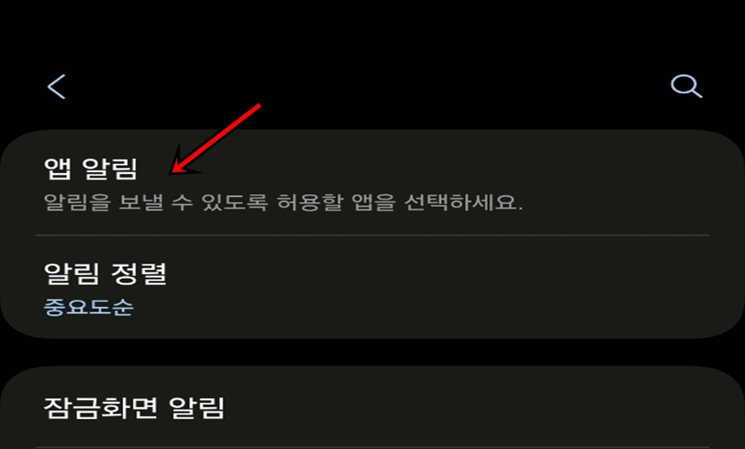 [앱 알림] 메뉴로 들어가 주세요.