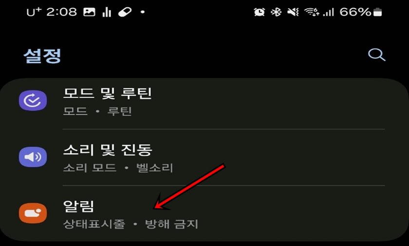 설정 메뉴로 들어가셨다면 [알림] 메뉴를 찾아서 들어가 주세요.