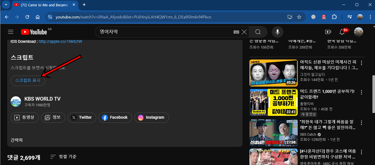 1. 유튜브 홈페이지에서 자막 다운받는 방법