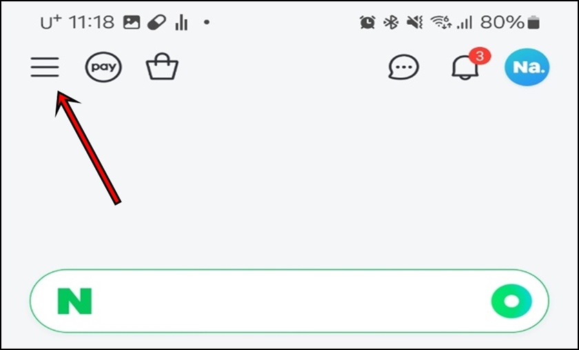 네이버 앱을 실행 후 왼쪽 상단의 메뉴를 클릭해 주세요.