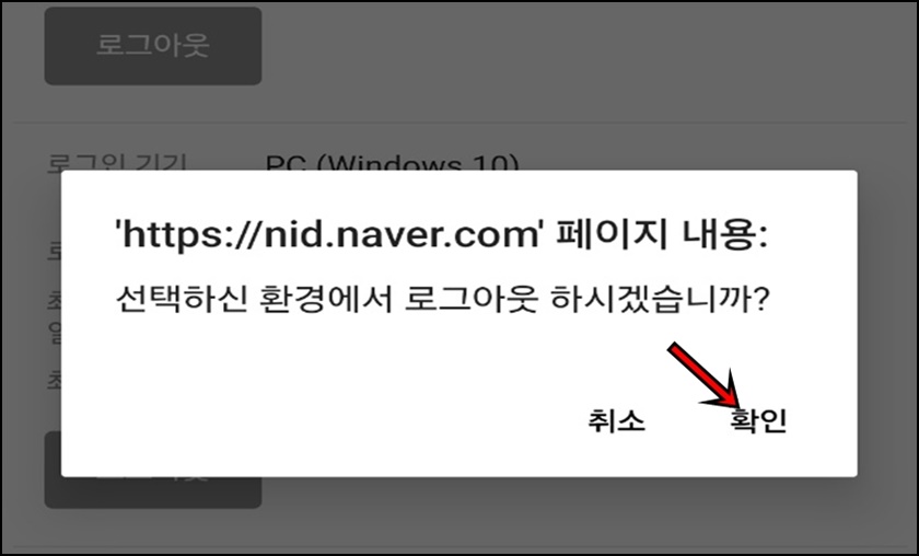 마지막으로 "선택하신 환경에서 로그아웃 하시겠습니까?"라는 메시지가 나오며 "확인"버튼을 클릭하면 로그아웃이 완료가 돼요. 참 쉽죠?
