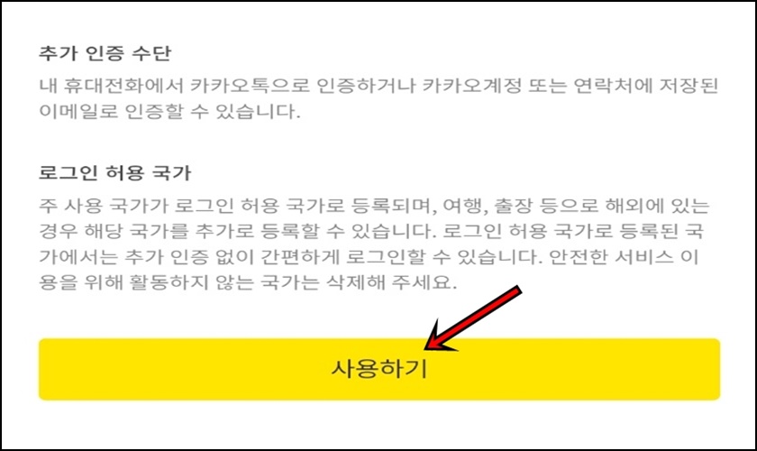 다시 한번 카카오 계정의 패스워드를 입력해 주시면 "국가별 로그인 제한"설정이 완료가 돼요.