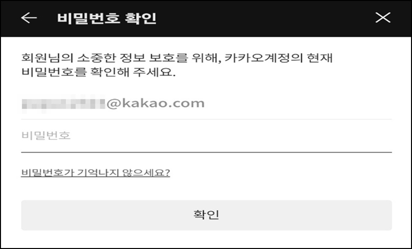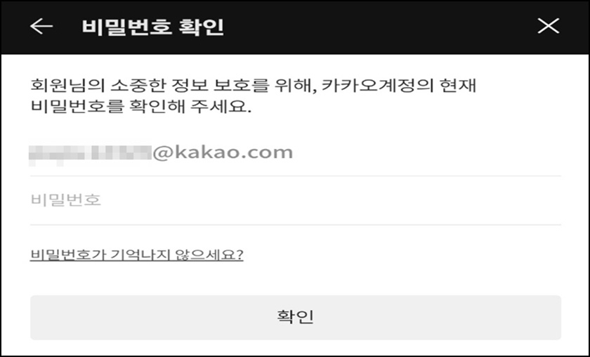 다시 여러분의 카카오계정의 패스워드를 입력해 주세요.