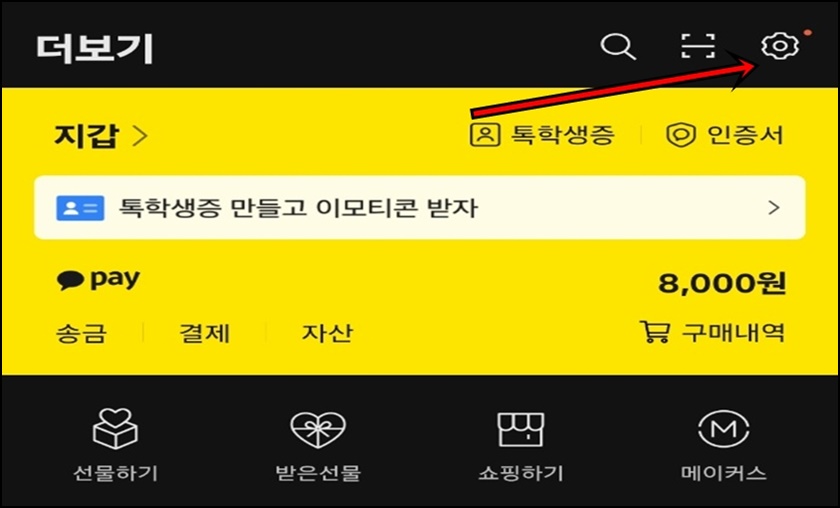 더 보기 메뉴로 들어오시면 오른쪽 상단의 [톱니바퀴]설정메뉼르 클릭해 주세요.