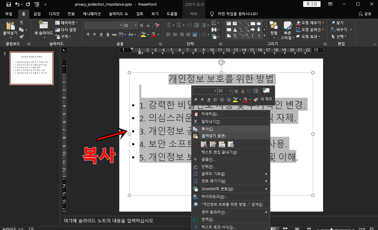 자 먼저 PPT에서 텍스트를 복사를 해주세요.