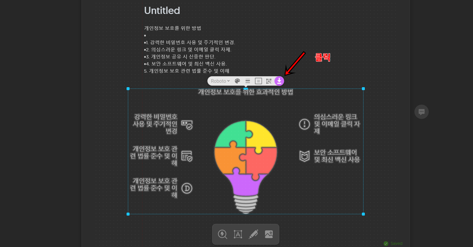 만약 마음에 드는 디자인을 찾았다면 디자인을 전체 선택 후 위 사진처럼 상단의 [다운로드] 아이콘을 클릭해 주세요.