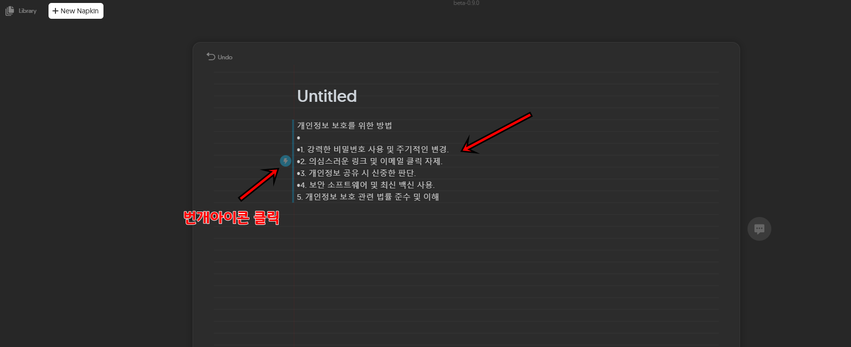 다음 검색사이트에서 "냅킨AI"를 검색하셔서 [https://www.napkin.ai] 사이트에 접속을 해주세요.