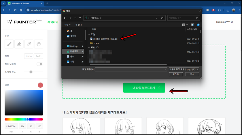 이번엔 여러분이 그린 그림을 업로드해서 작업해 보도록 해봐요. 저는 그림을 그릴줄 모르기에 다른 사이트에서 스케치 그림을 가져와볼게요^^.