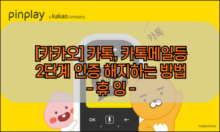 안녕하세요 오늘도 휴잉의 블로그를 찾아주신 여러분 감사드려요. 오늘 제가 포스팅할 내용은 "카톡, 카톡메일 등 2단계 인증 해지하는 방법"에 대해 포스팅해보려고 해요. 카톡을 로그인하거나, 카카오메일, 카카오서비스 등을 이용할 때 보안을 위해 2단계 인증을 통해 접속이 가능한데, 보안을 위해 설정해 주는 게 좋지만 간혹 너무 귀찮고 번거롭기만 할 경우가 있어요. 보안에 취약하긴 하지만 혹시나 카카오 2단계 인증 예외처리하는 방법에 대해 궁금하신 분들을 위해 2단계 인증을 해지하는 방법을 설명드릴게요.