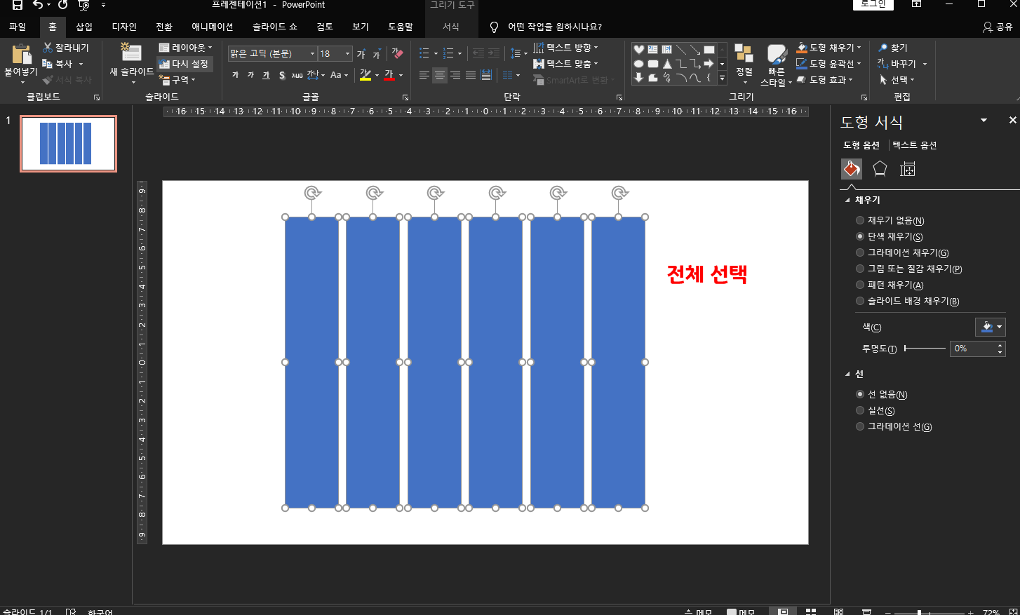 도형을 전체 선택해 주세요.