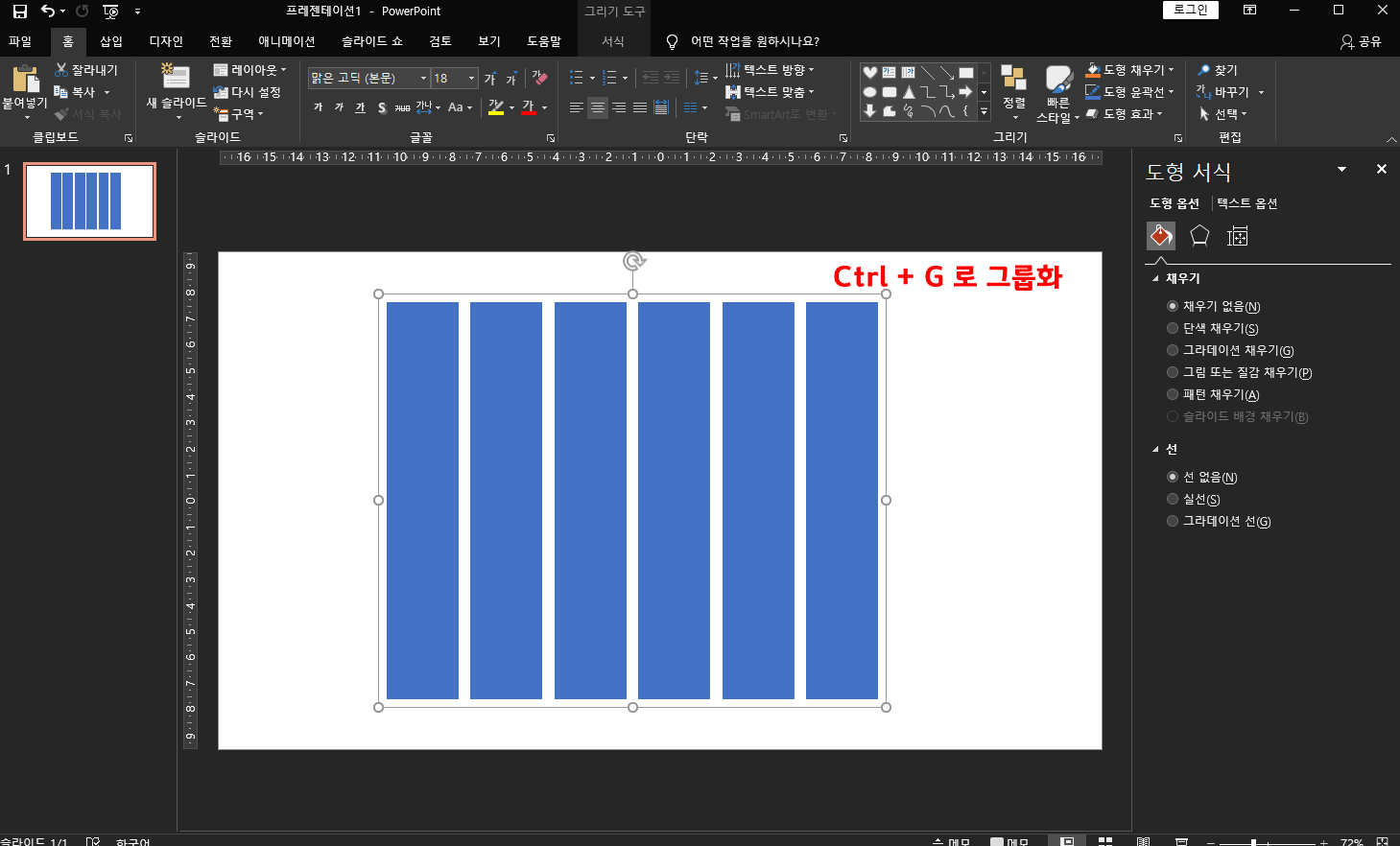 그다음은 CTRL + G를 클릭하여 도형을 그룹화해주세요.