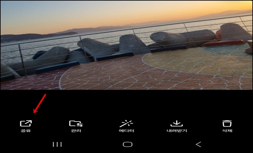 스마트폰에 모바일 어플 MYBOX앱이 설치되어 있다면 모바일에서도 가능해요. 모바일 MYBOX앱을 실행 후 공유하고 싶은 사진을 클릭 후 위 사진과 같이 "공유"버튼을 클릭해 주세요.