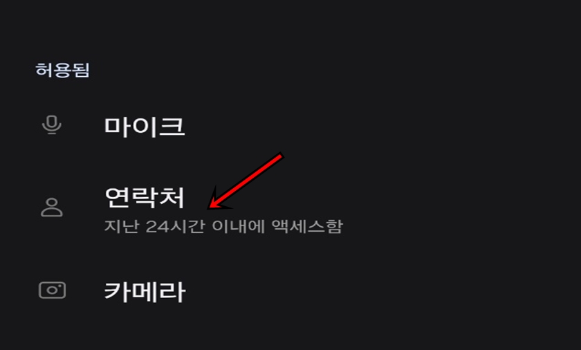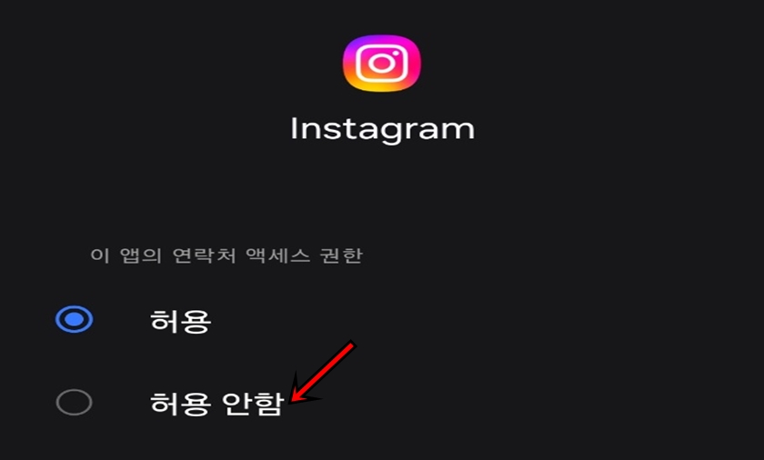 "이 앱의 연락처 액세스 권한"을 허용 안 함으로 설정해 두시면 설정이 완료돼요. 참 간단하죠?