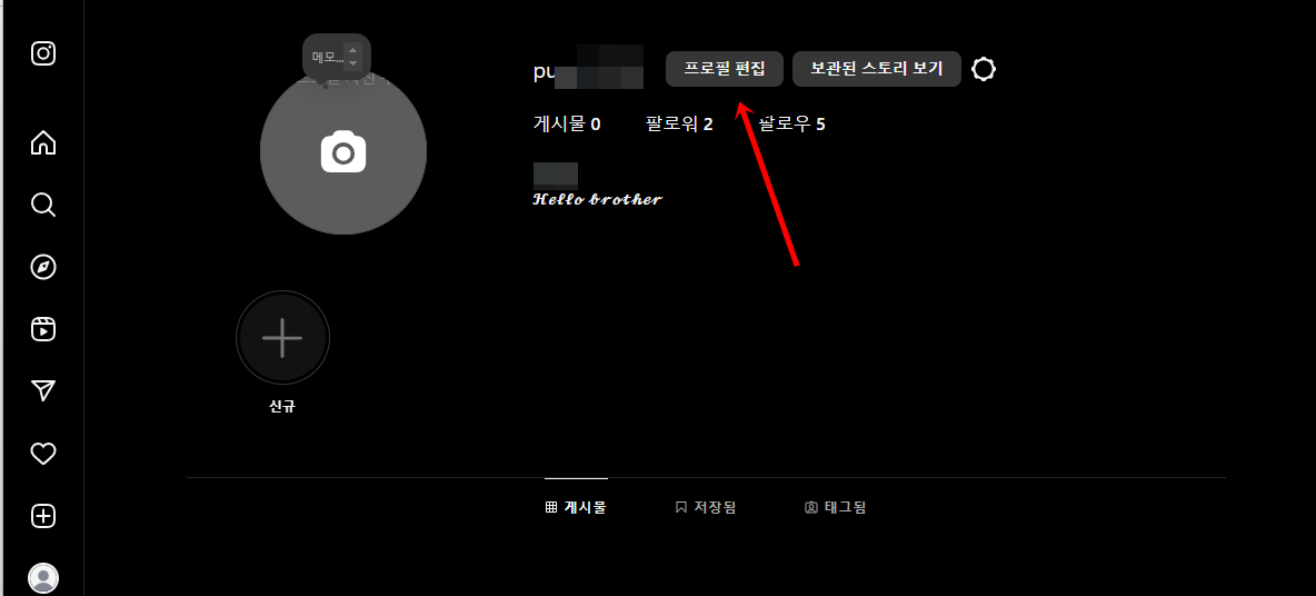 다음은 PC환경에서 적용하는 방법이에요. PC에서 인스타그램사이트 로그인 후 왼쪽 하단의 "프로필"을 클릭해 주세요.