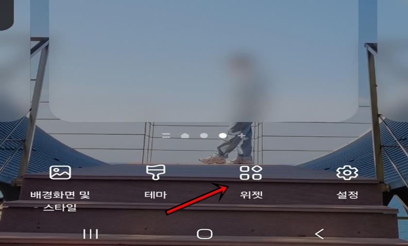 갤럭시스마트폰 빈 화면을 꾸~욱 누르면 위 사진처럼 나올 텐데 "위젯"버튼을 클릭해 주세요.