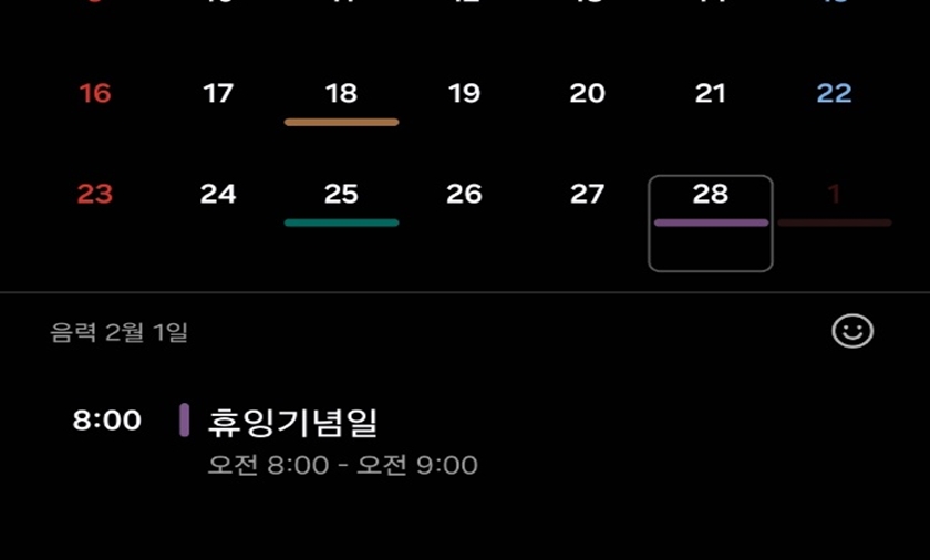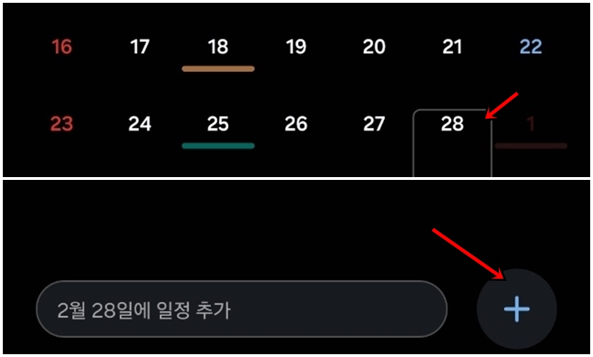 캘린더앱이 실행되면 원하는 날짜를 찾아 선택 후 하단의 + 버튼을 클릭해 주세요.