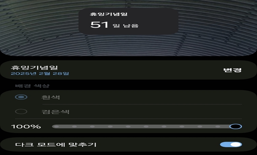 갤럭시 스마트폰 화면에 디데이 위젯일 설정되었어요!!