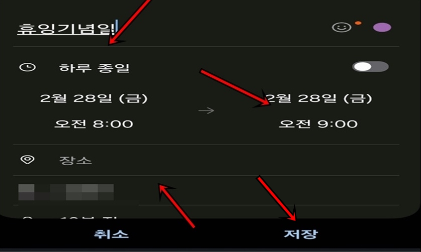 디데이에 사용될 이름과 날짜 정보를 확인 후 "저장"버튼을 클릭해 주세요.