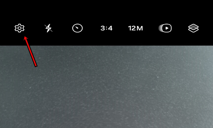 카메라 어플 실행 후 왼쪽 상단의 톱니바퀴(설정) 메뉴를 클릭해 주세요.
