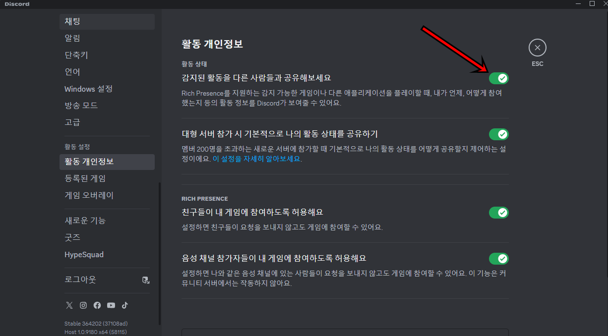 디스코드 게임활동 숨기는 방법은 크게 어렵지 않아요. 아래 사진을 통해 간단히 설명드릴게요.