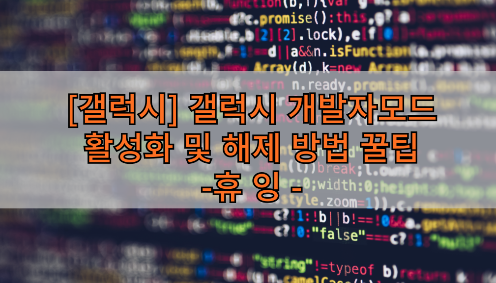 안녕하세요 오늘도 휴잉의 블로그를 찾아주신 여러분 감사드려요. 오늘 제가 포스팅할 내용은 "갤럭시 개발자모드 활성화 및 해제하는 방법"에 대해 포스팅해보려고 해요. 갤럭시 개발자모드란 안드로이드 운영체제의 여러 기능을 이용할 수 있도록 만든 고급 옵션인데요. 개발자모드는 일반 사용자에게 보이지 않는 다양한 설정들을 활성화하여 개발자나 전문가가 기기를 수정하고 최적화할 수 있도록 할 수 있어요. 개발자모드에서 GPU랜더링을 하여 앱 성능을 개선하거나 디버깅을 활성화하여 기기와 PC 간의 연결을 안정적으로 만들 수도 있어요. 이처럼 갤럭시 개발자모드는 다양한 기능을 운영할 수 있도록 하는 설정인데, 잘못 설정하게 되면 기기에 문제가 생기거나 보안에 문제가 생길 수 있어 사용 시에는 매우 주의가 필요해요. 그럼 갤럭시 개발자모드를 어떻게 활성화하고 해제하는지 여러분들께 설명드릴게요.